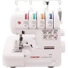 оверлок, рабочих нитей: 3, 4, нитей для плоского шва: 7, максимальная ширина строчки: 7 мм, максимальная длина строчки: 4 мм, регулировка давления лапки, скорость шитья: 1500 об/мин