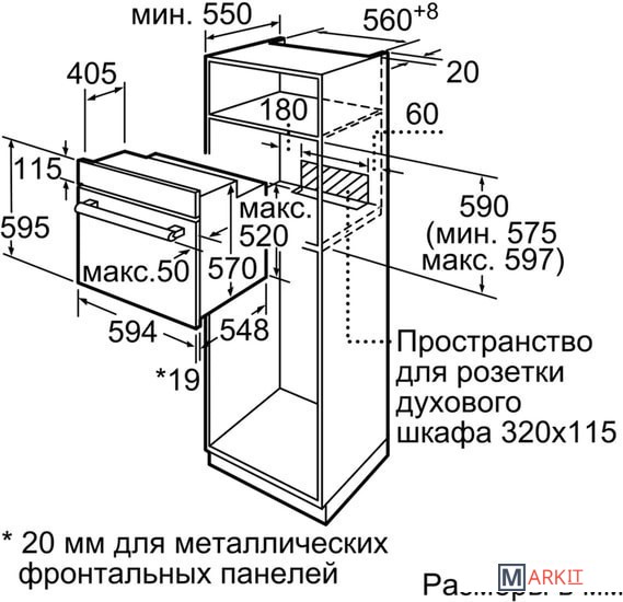 Размеры ниши для встраивания