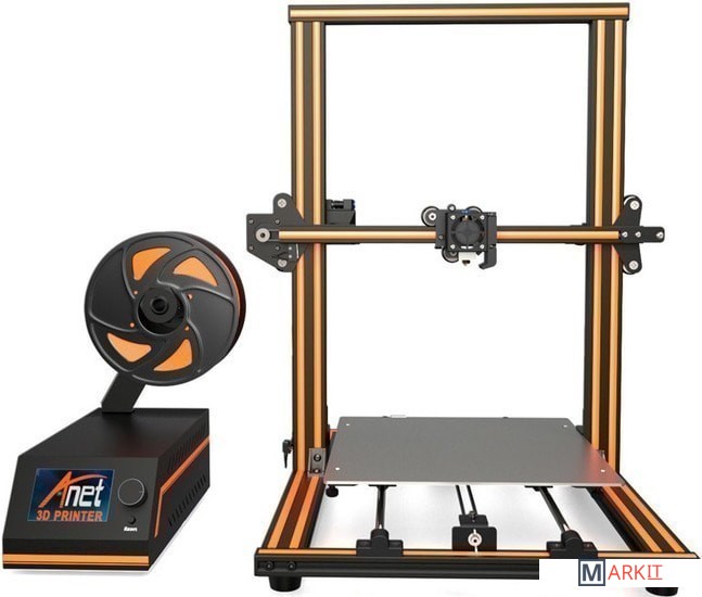 Принтер с металлической рамой исполнен в чёрно-оранжевых цветах.Вся электроника вынесена в отдельный системный блок, что лишний раз не нагружает раму принтера.Автоматическая загрузка и выгрузка пластиковой нити придает удобство и действительно промышленное применение.