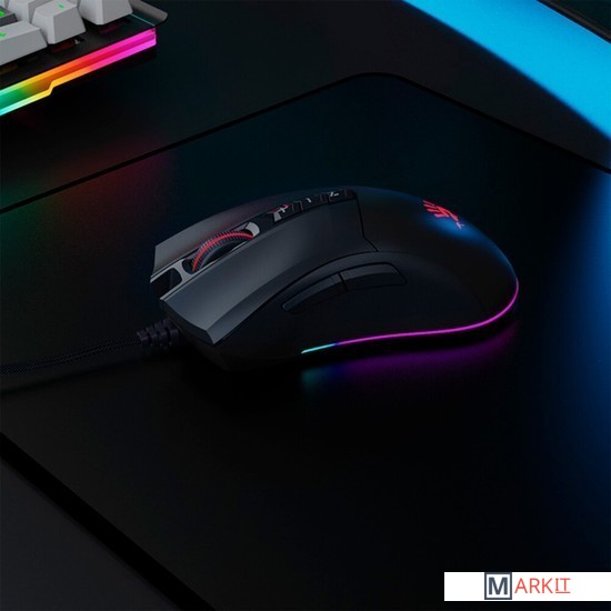 Кастомизированный сенсорБлагодаря профессиональному сенсору с характеристиками 10000 CPI, 8000 FPS, 250 IPS и ускорением 35 g, мышь обеспечивает точность и управляемость там, где нужна быстрота реакции: в играх FPS и тп.5 эффектов RGB подсветкиЭффекты подсветки настраиваются поднятием мыши и нажатием кнопки [+]. По умолчанию загружены 5 типов эффектов подсветки.Настройка кнопки [M]Кнопку [M] можно настроить самостоятельно посредством программного обеспечения.ПО Bloody EsportsПрограммное обеспечение Bloody Esports – это набор многофункциональных программ редактирования для игровой мыши. Оптимизируйте наиболее подходящую конфигурацию для игры посредством кнопок, чувствительности, макросов и т.д.Металлические ножки X'GlideПрочные, чувствительные, без износа, устраняют трение практически на любой поверхности.