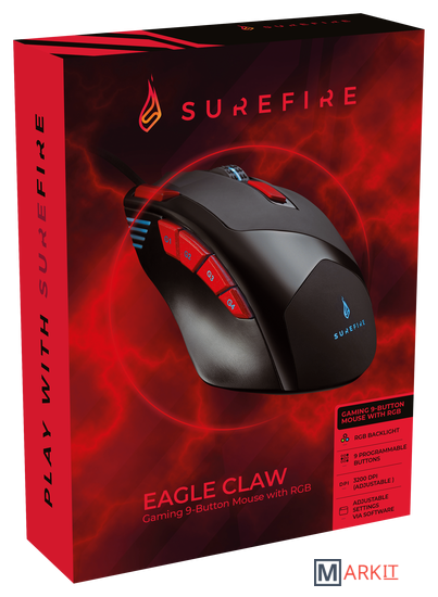 Благодаря 9 программируемым кнопкам, полноцветной подсветке и разрешению до 3200 тчк/дюйм мышь SureFire Eagle Claw станет вашим верным помощником в самых сложных играх.