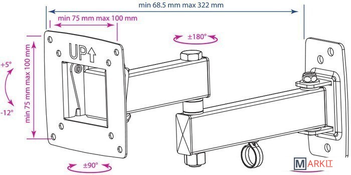 Расстояние от стены (потолка) 68.5 — 322 мм