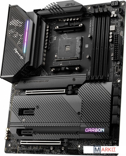 Поддержка процессоров AMD Ryzen 5000 Series, 5000 G-Series, 4000 G-Series, 3000 Series, 3000 G-Series, 2000 Series and 2000 G-SeriesПоддержка памяти DDR4 с частотой до 5300 МГц (в режиме разгона)Высокоскоростные интерфейсы: слоты PCIe 4.0, Lightning Gen 4 x4 M.2, USB 3.2 Gen 2Мощная система питания: схема 14+2 с удвоителями фаз и цифровым управлением, 8+4-контактный разъем питания процессора, технологии Core Boost и DDR4 BoostЭффективная система охлаждения: большой радиатор с тепловой трубкой, термопрокладки на транзисторах с теплопроводностью 7 Вт/(м·K), дополнительные термопрокладки на дросселях, радиаторы Shield Frozr на слотах M.2Иллюминация Mystic Light с гибкой регулировкой: 16,8 млн цветов и несколько визуальных эффектов, подключение внешней адресуемой и неадресуемой подсветкиКонтроллеры 2.5G Ethernet (с трафик-менеджером LAN Manager) и Intel Wi-Fi 6E: высокоскоростное и стабильное проводное и беспроводное сетевое подключение для широкого спектра приложенийАудиосистема Audio Boost 5: высококачественное звучание, создающее неповторимую атмосферу в играхВысококачественная конструкция: 6-слойная печатная плата с увеличенным содержанием медиПредустановленная панель ввода/вывода: защищает от электромагнитных помех и облегчает установку материнской платы