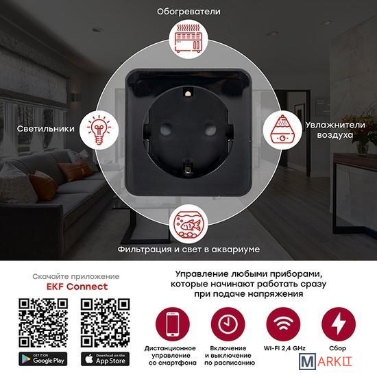 Markit » Умный дом » Умная розетка EKF Сonnect PRO Wi-Fi (черный)
